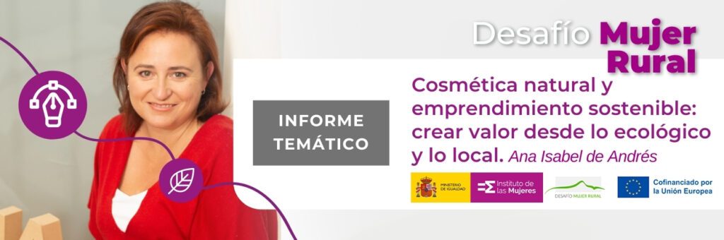 El pasado 20 de marzo tuvo lugar el encuentro online sectorial para emprendedoras y empresarias del medio rural «Cosmética natural y emprendimiento sostenible: crear valor desde lo ecológico y lo local. Ana Isabel de Andrés». La actividad, enmarcada en el programa Desafío Mujer Rural, iniciativa del Instituto de las Mujeres